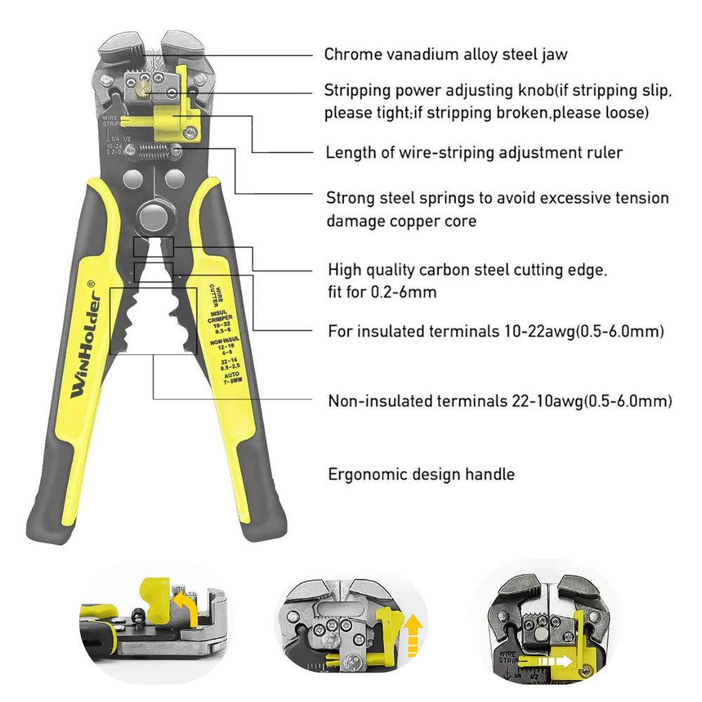 3-in-1 Elektriker Crimpzange | Automatisches Abisolier-, Schneidwerkzeug für Kabel & Draht