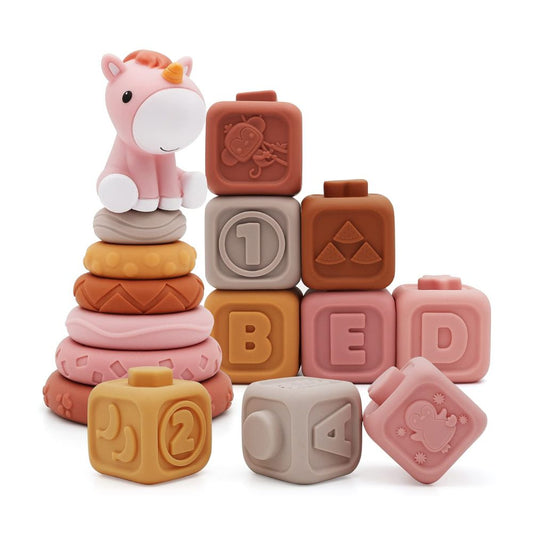 Babyspielzeug zum Zahnen (13-teilig): Baukreise und Blöcke, Stapeln & Verschachteln