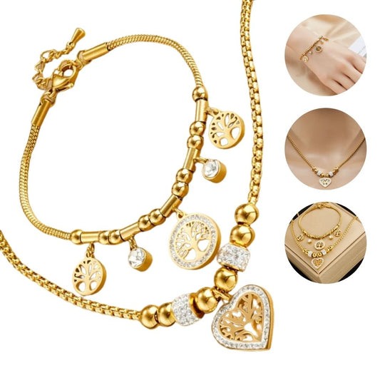 316L Stainless Steel Jewelry Gift Set for Women: Necklace & Bracelet with Heart and Tree of Life Pendant