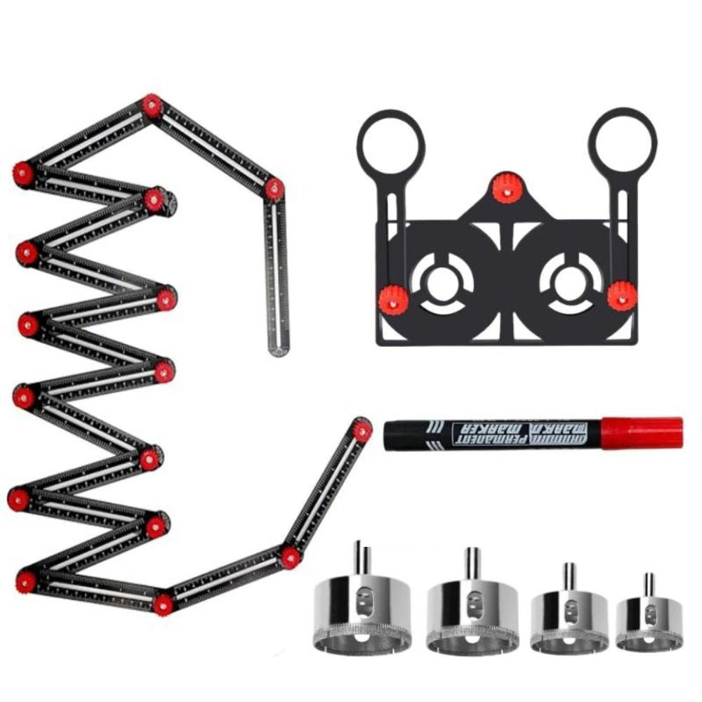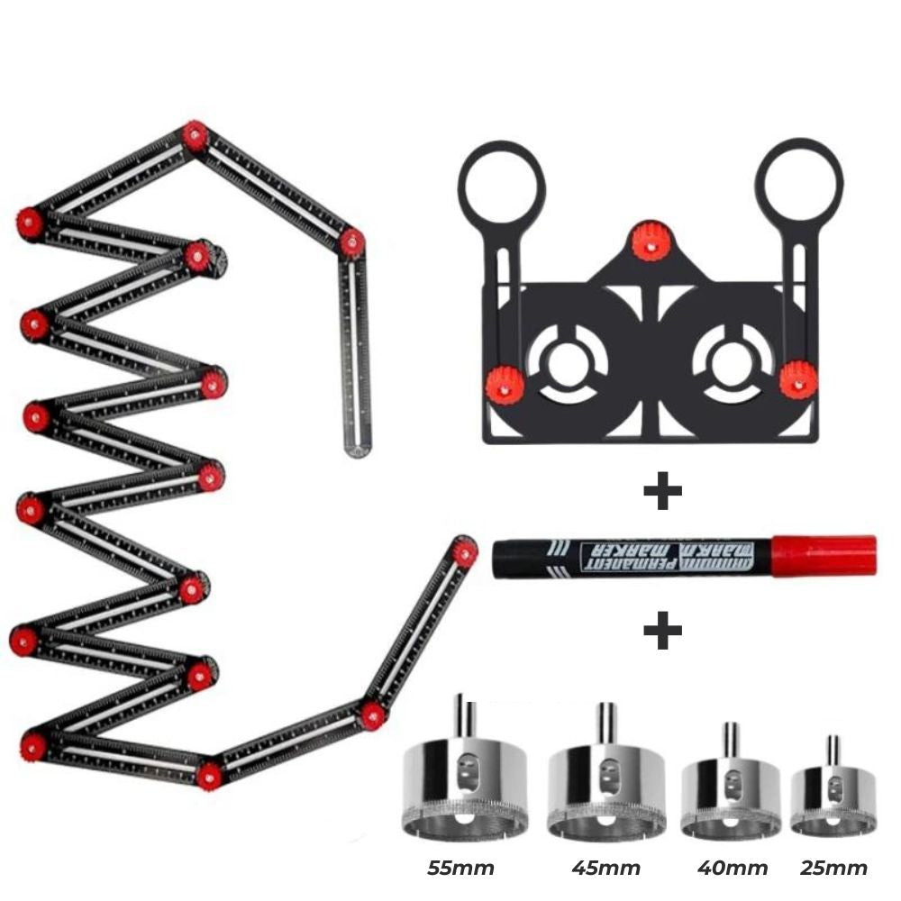 16-Sided Multi-Angle Measuring Ruler (Complete Set) | Including Marker Pen and 4 Hole Drilling Attachments