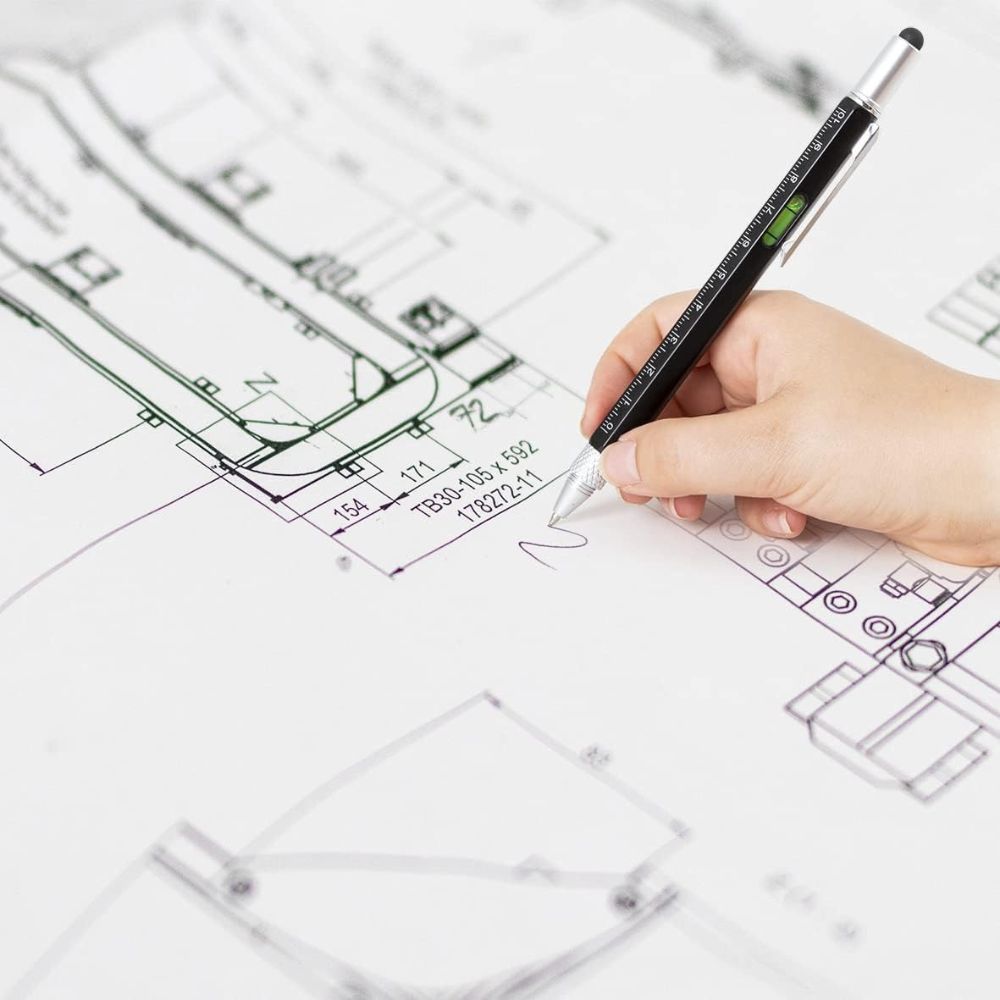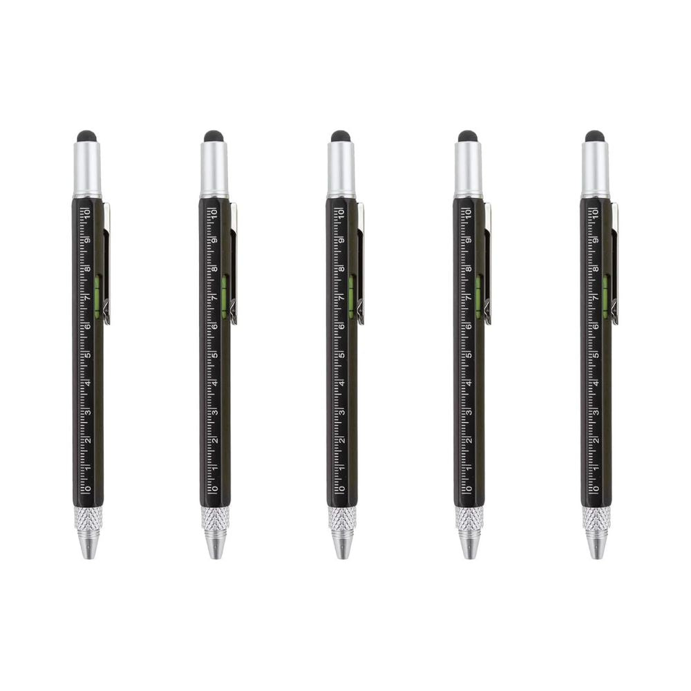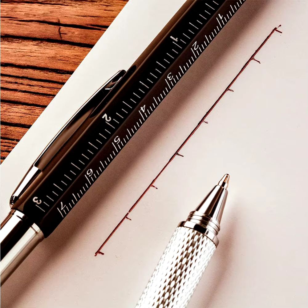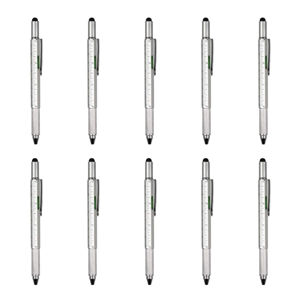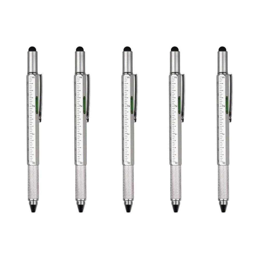6-in-1 Multifunctional Pen: Stylus Touch Pen, Screwdriver (Slotted + Phillips), Ruler, Spirit Level, Ballpoint Pen