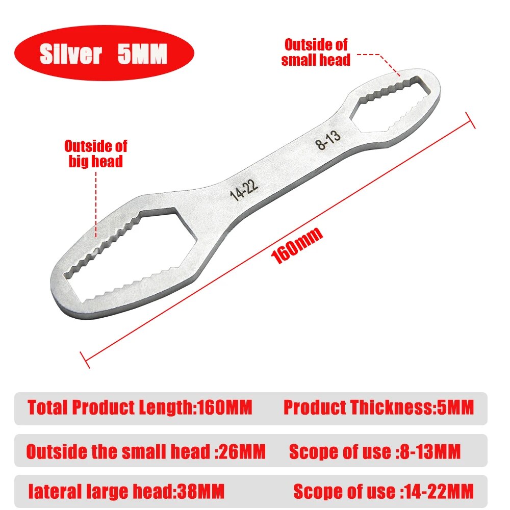 This double-sided self-adjusting multifunctional tool is efficient, time-saving, and of industrial quality. Made from chromed vanadium steel, it is rust-resistant and aesthetically pleasing.