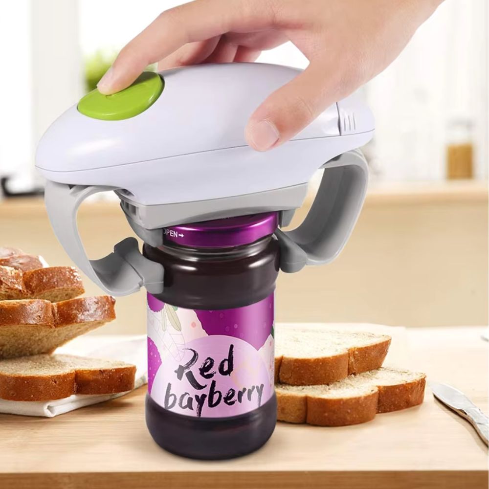 Experience convenience with the electric jar lid opener, an indispensable kitchen tool for easily opening jars, cans and bottles. Ideal for home, restaurants and anyone who wants to save time and effort.