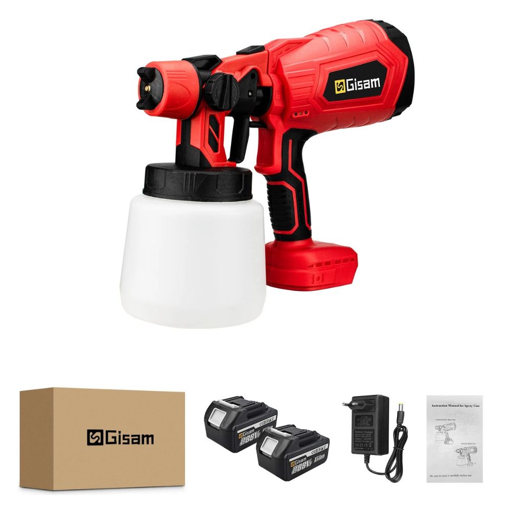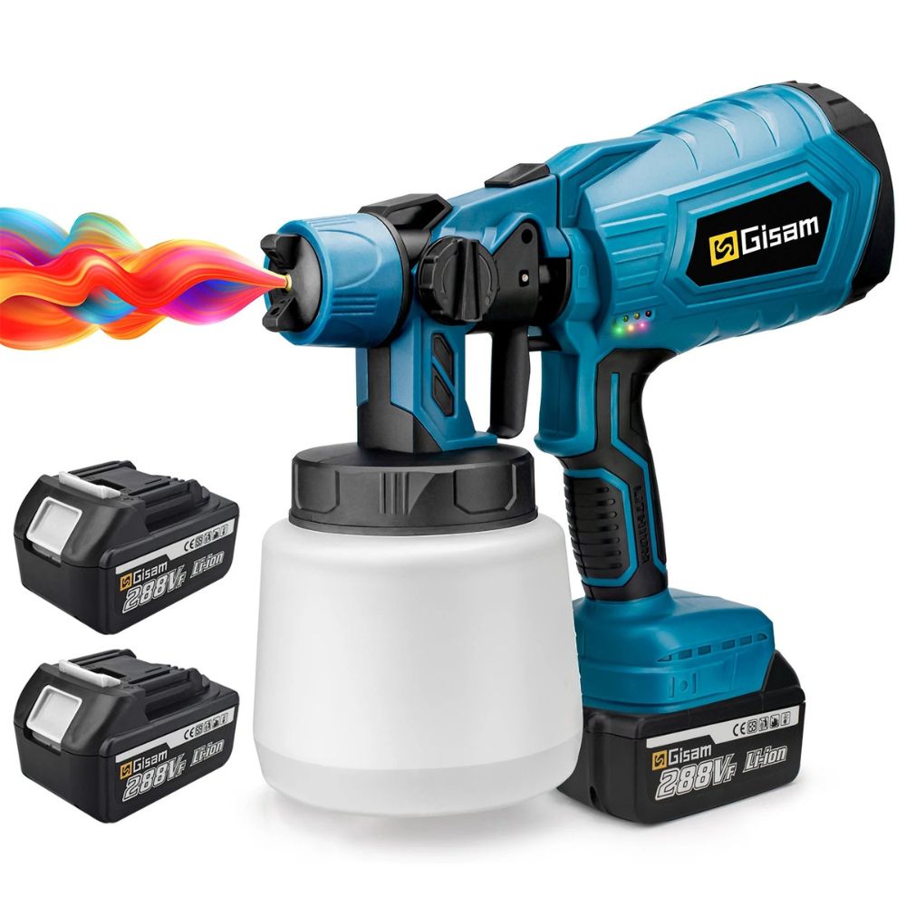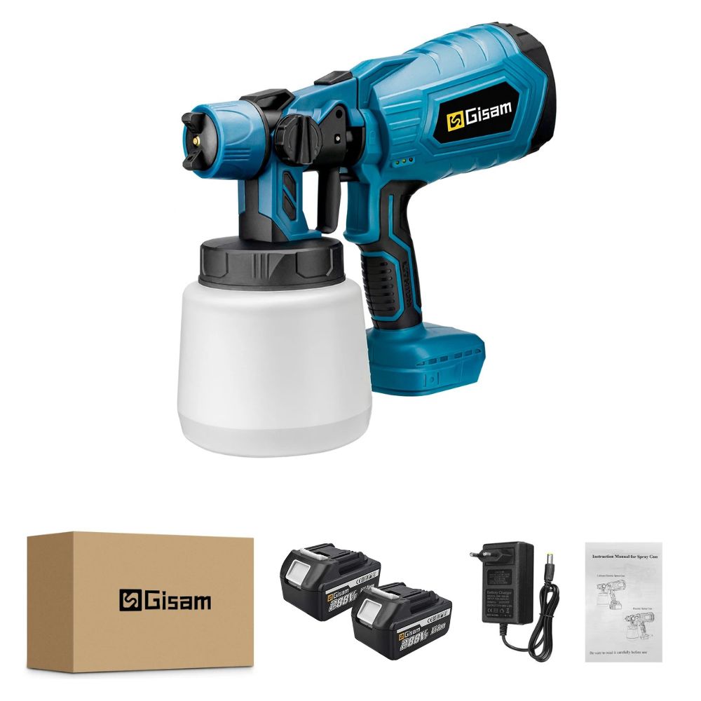 GISAM Cordless Paint Sprayer System (1000ml) with 2 Large Batteries, 4 Nozzles | Compatible with Makita 18V Battery