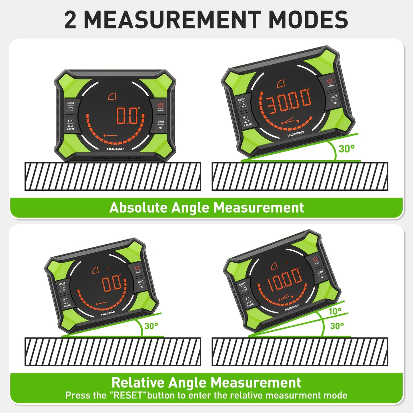 Huepar 3-in-1 Digital Angle Finder with Laser | LCD Display & Magnetic Inclinometer (GIF2)
