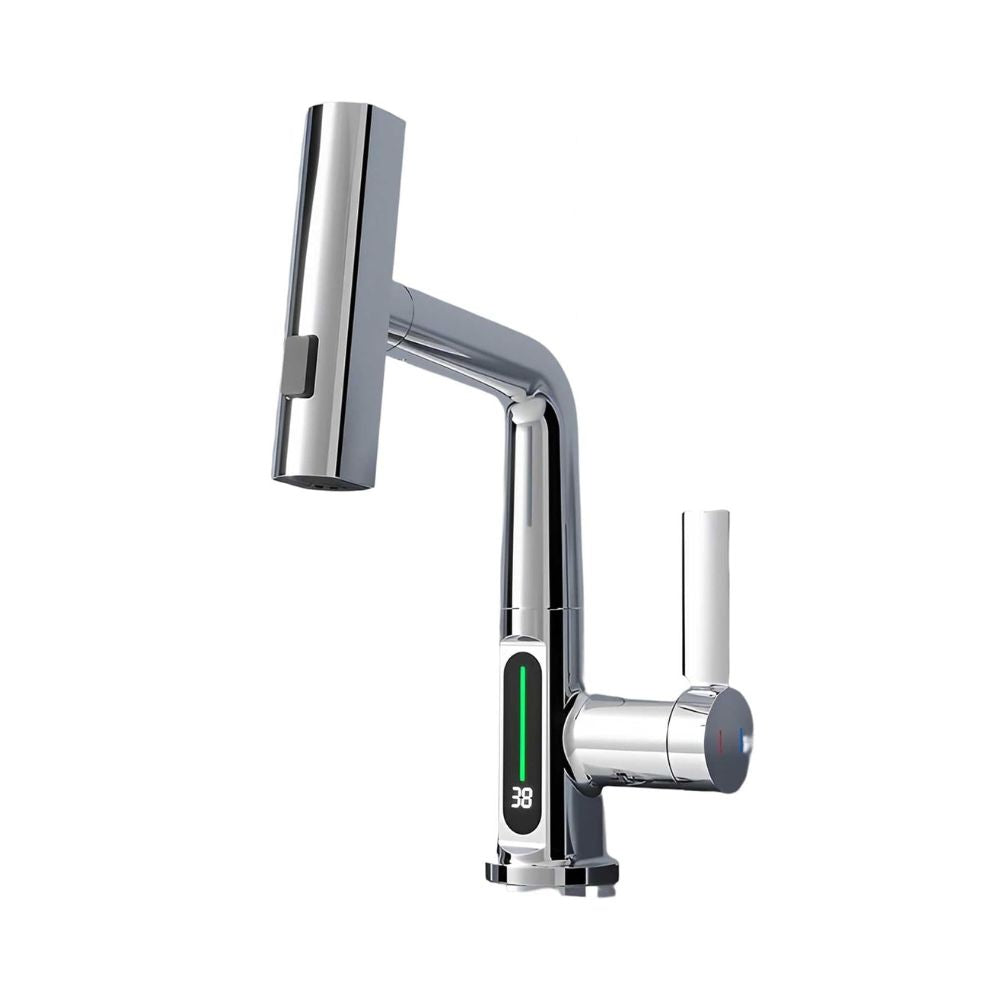 LED Digital Display Waterfall Kitchen Faucet: 3-in-1 Swivel Spout | Height Adjustable - Hot & Cold Switch1