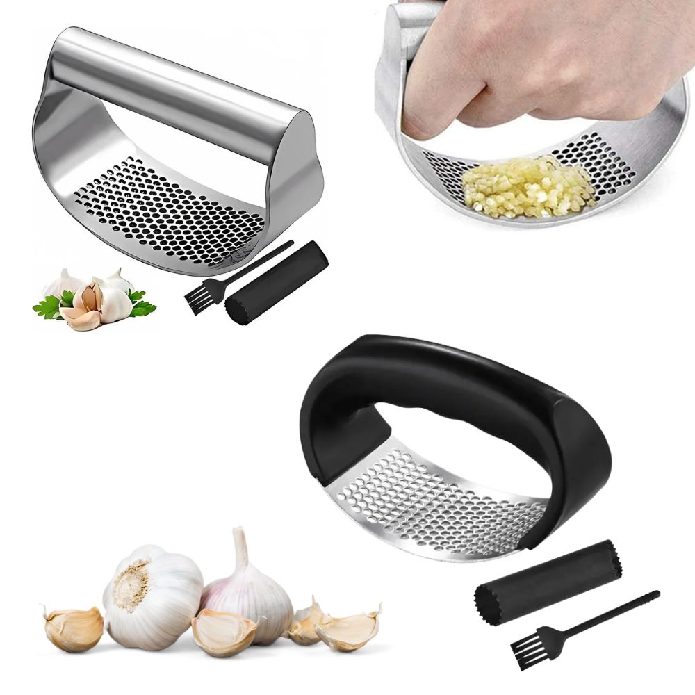 Manual stainless steel garlic press | Crusher for garlic & ginger, kitchen helper with set