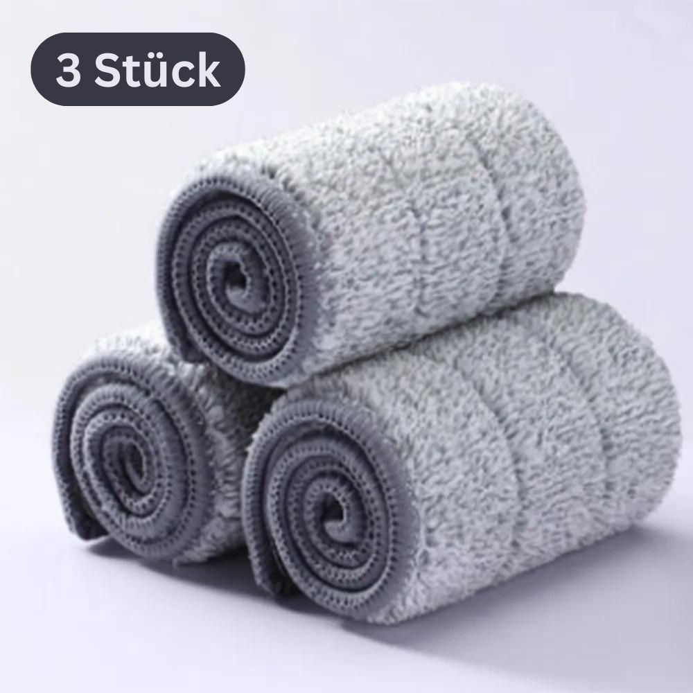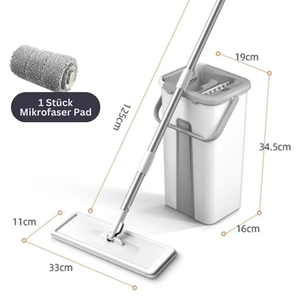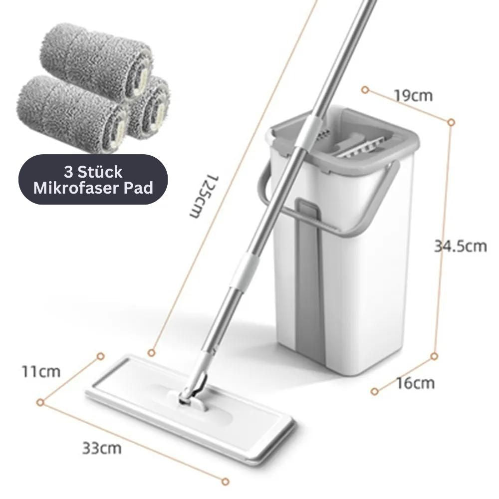 This complete set includes a practical cleaning bucket with an efficient mop and optionally with one or (with 3) microfiber pads for optimal cleanliness.