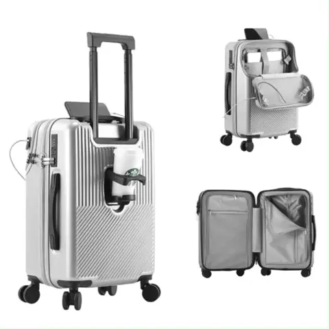 Multifunctional Hard-Shell Suitcase | Front Opening, TSA Lock, USB, Quiet Wheels, Cup Holder
