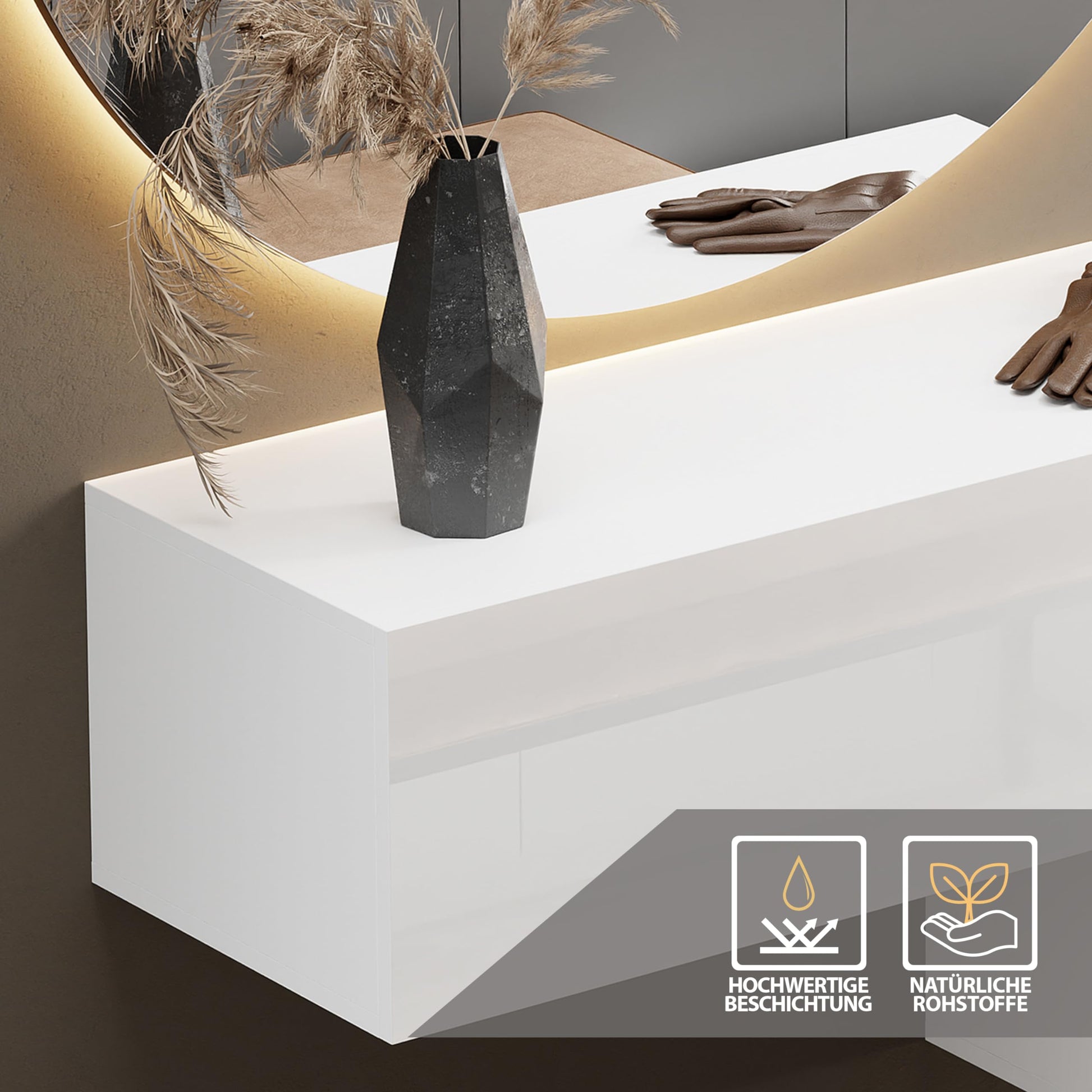 Planetmöbel hallway wardrobe (2x160cm) including round mirror with lighting (100cm) in white