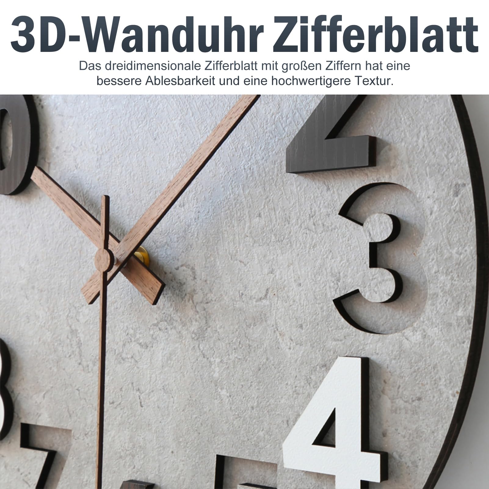 - 12-inch diameter with 3D numbers - easy to read even from a distance