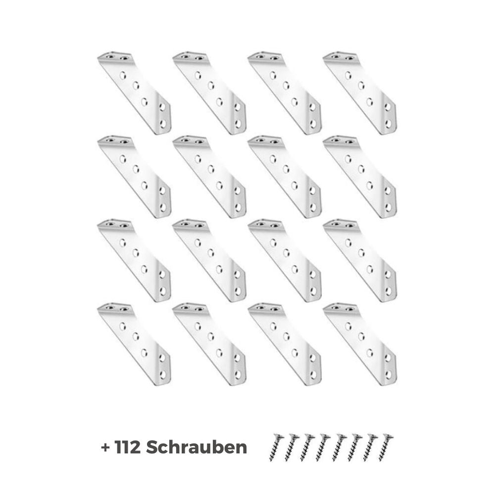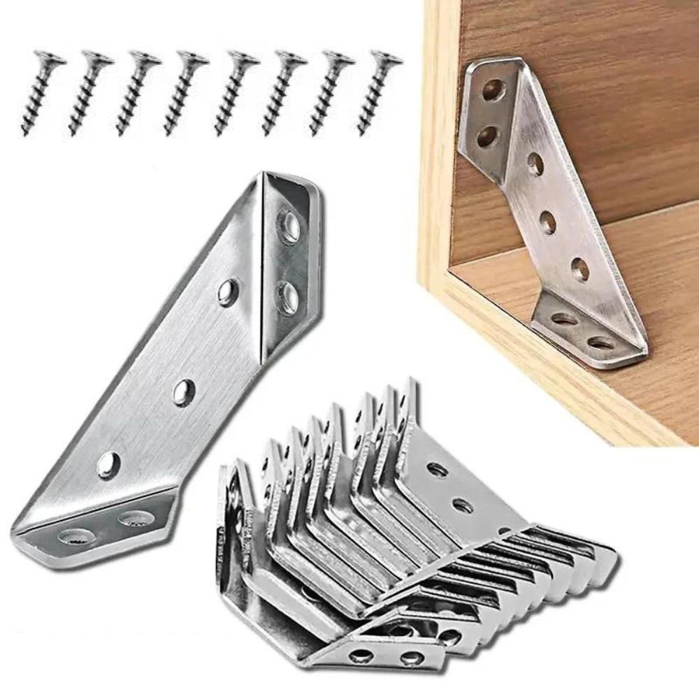 The stainless steel angle connectors are ideal for woodworking and perfect for reinforcing right-angle connections such as bookshelves, chairs, table legs, beds, cabinets, and drawers. They meet a variety of needs and are available in quantities of 16, 64, 100, and 120 pieces to suit your individual requirements.