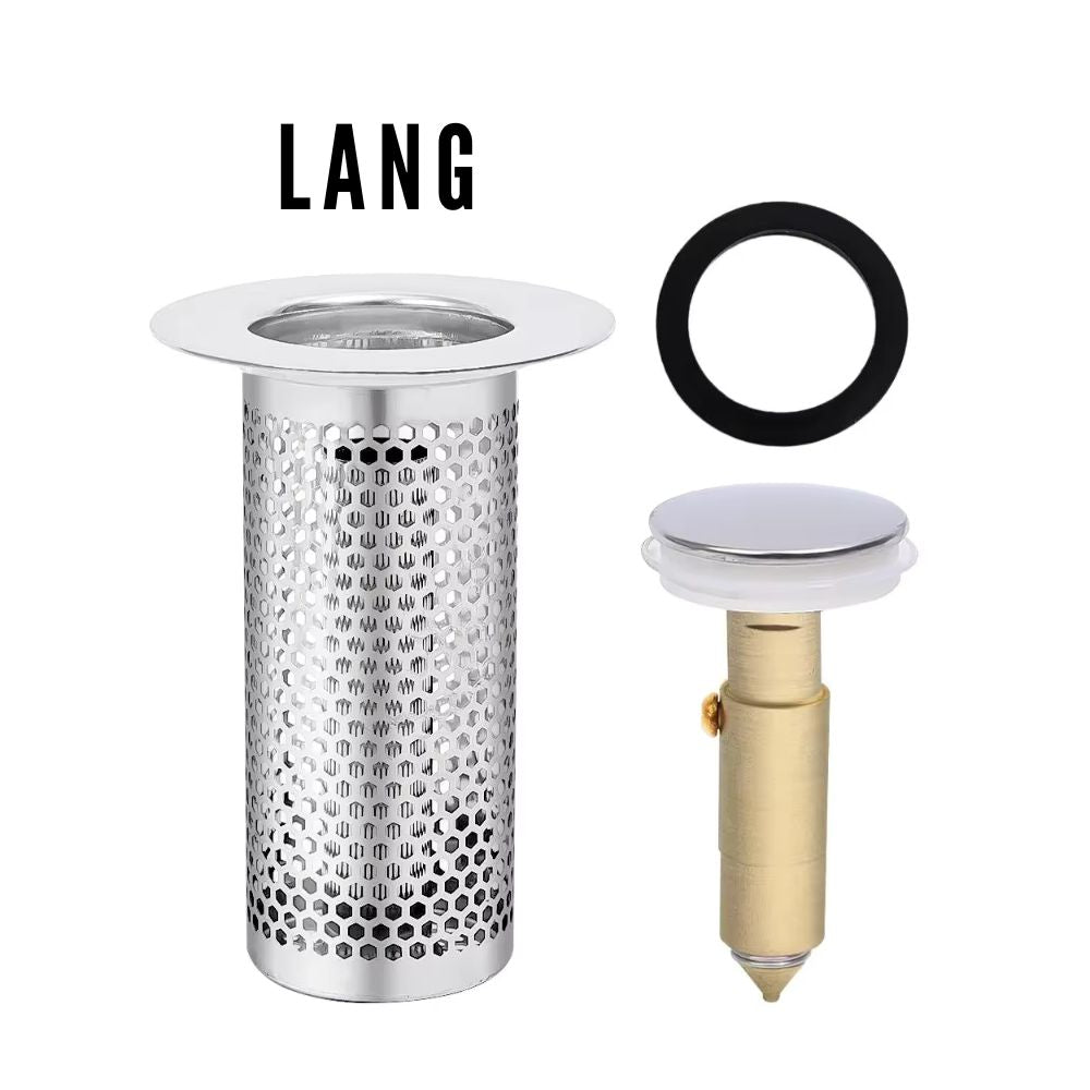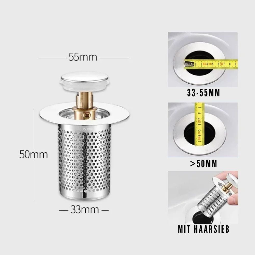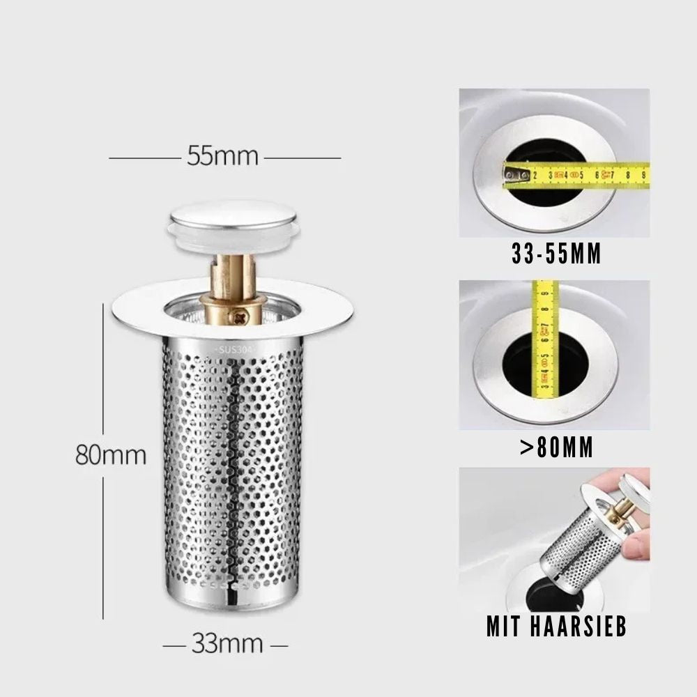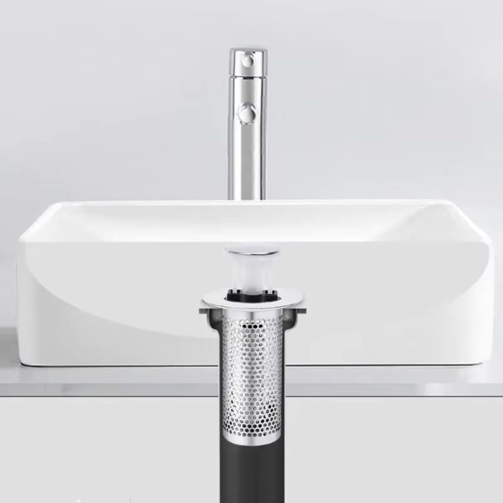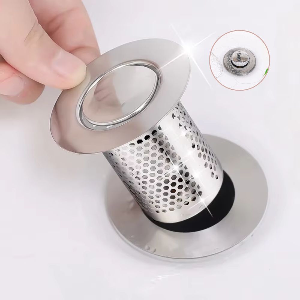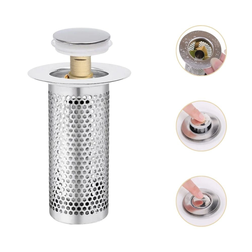 Bouchon de vidange escamotable en acier inoxydable avec filtre à cheveux | Filtre d'évier anti-colmatage (GIF2)