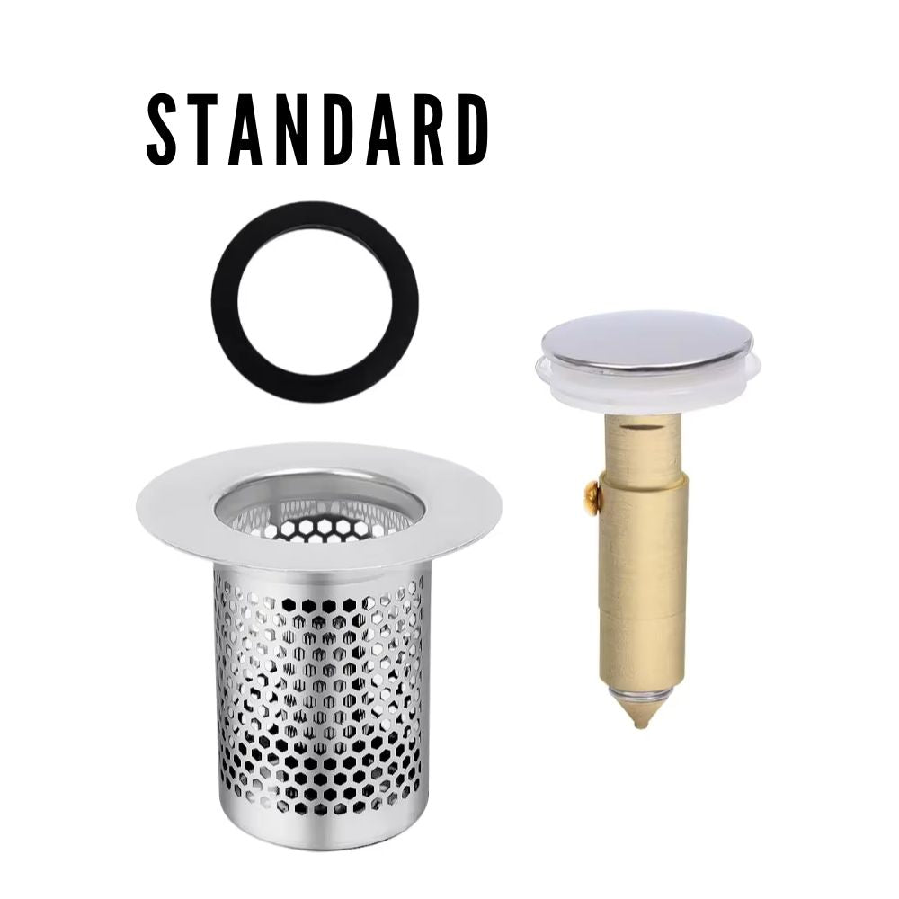 Bouchon de vidange escamotable en acier inoxydable avec filtre à cheveux | Filtre d'évier anti-colmatage (standard)
