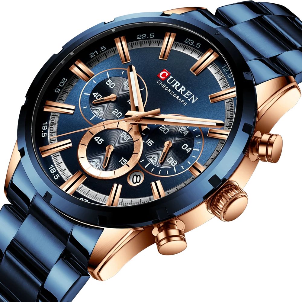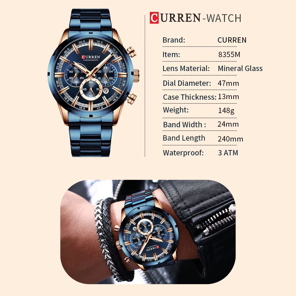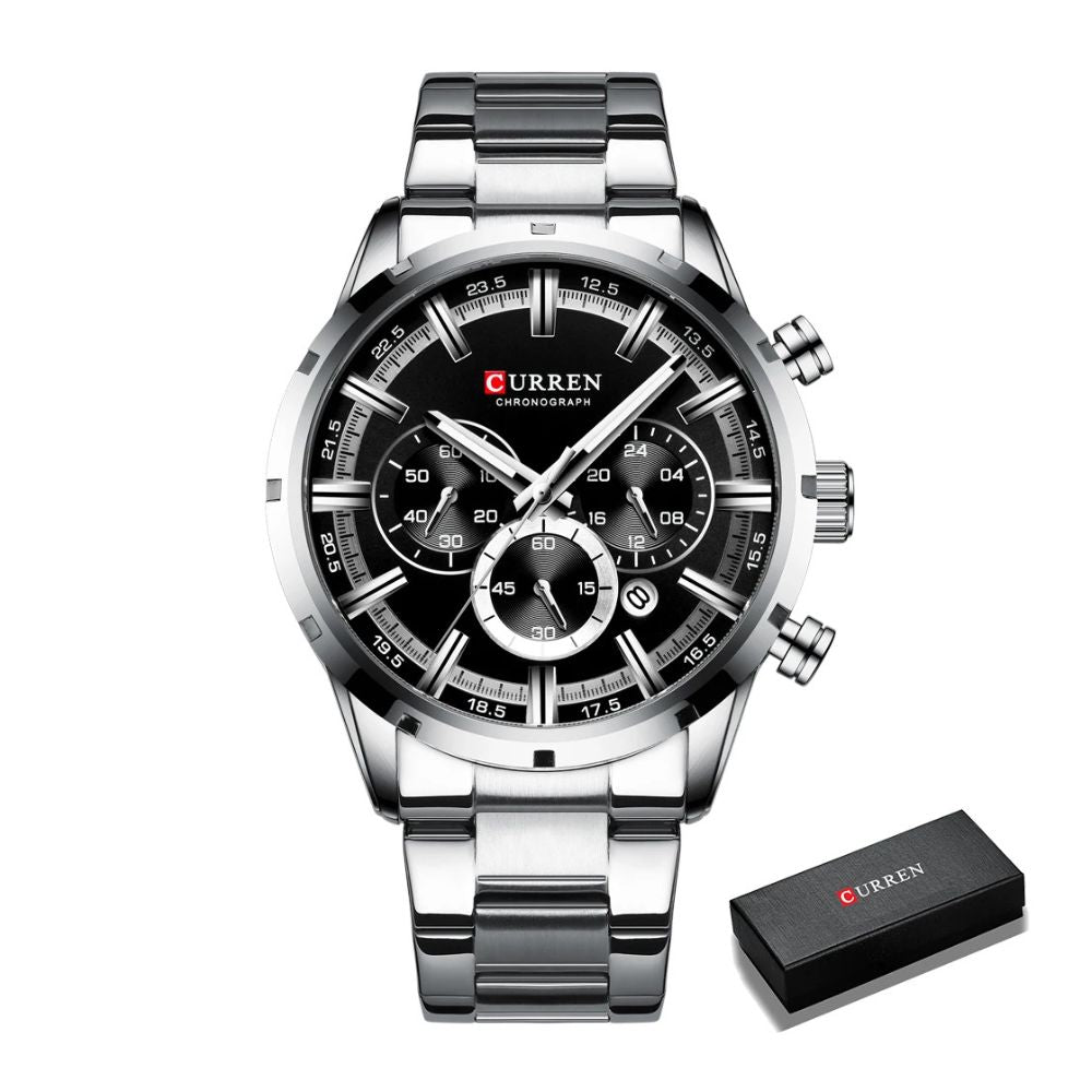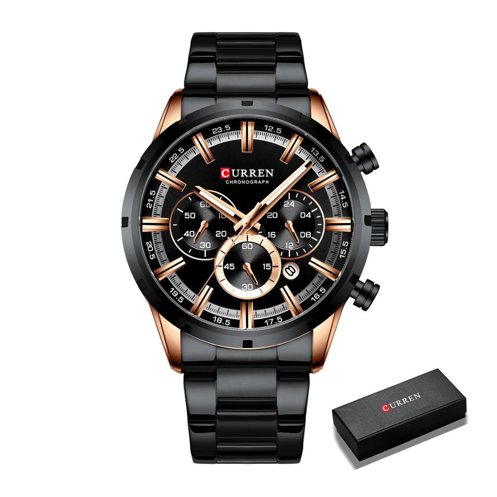 • 1x Montre-bracelet chronographe CURREN pour homme avec coffret cadeau d'origine