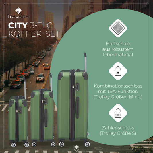 TRAVELITE Hartschalen Reisekoffer-Set mit TSA Schloss + Dehnfalte: Kratzfest