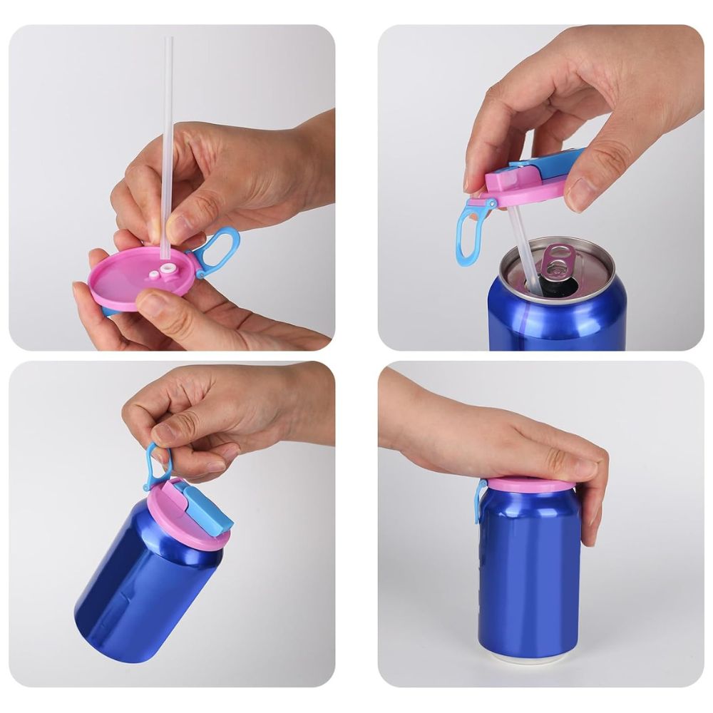 4er Set Getränkedosendeckel mit Strohhalm | Wiederverwendbare, tragbare Can Covers für frische Getränke (GIF2)