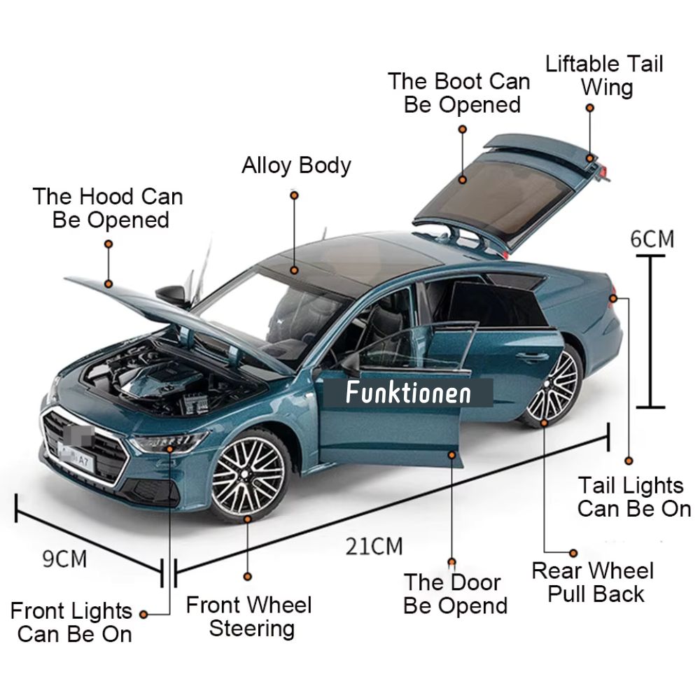 Erleben Sie das beeindruckende Audi A7 Modellauto, das nicht nur mit einer detailgetreuen Nachbildung des Audi A7 glänzt, sondern auch eine Vielzahl von faszinierenden Funktionen bietet.