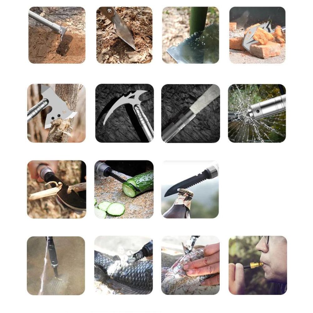 Egal ob Sie Gräben ziehen, Holz hacken oder ein Lagerfeuer vorbereiten müssen - diese Schaufel erledigt es alles! Mit integriertem Pickel, Axt und Taschenlampe sind Sie auch in Notsituationen bestens ausgerüstet. Perfekt für Outdoor-Liebhaber, Camper oder als Notfallausrüstung im Auto.