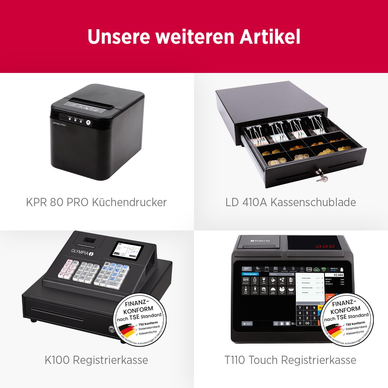 Das Olympia TS10 ist ein kompaktes und bedienerfreundliches Kassensystem, das sich ideal für den Einsatz in Gastronomie und Einzelhandel eignet. Ob im Café, Restaurant oder Ladengeschäft - dieses System bietet alle grundlegenden Funktionen für einen reibungslosen Ablauf direkt am Point of Saleganz ohne PC oder externe Software.