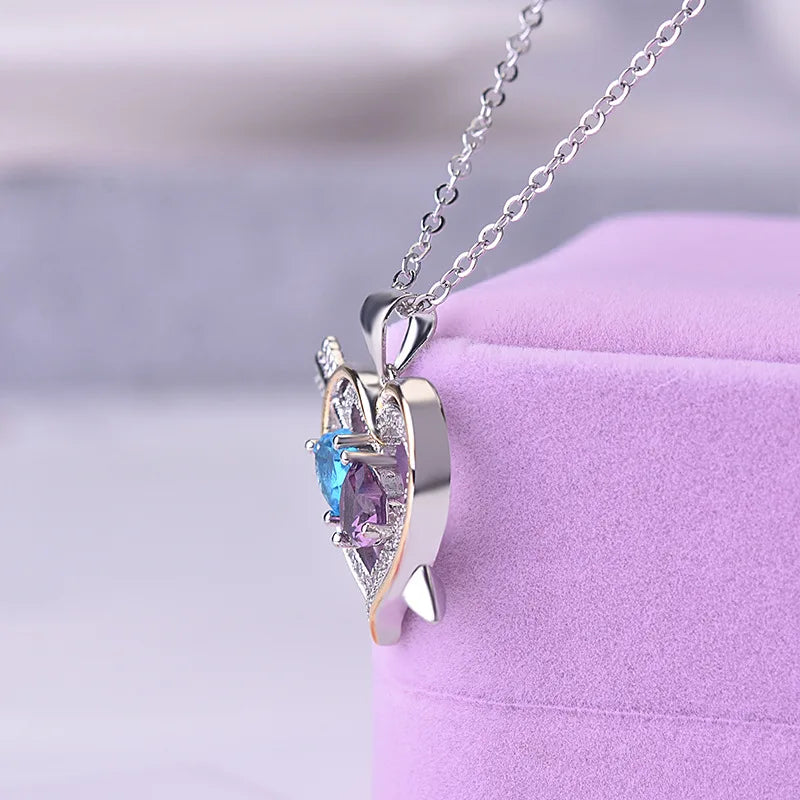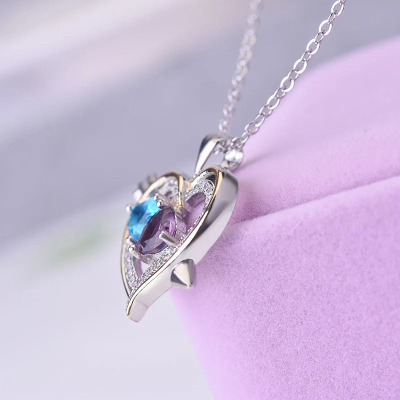 Silberherz Halskette mit Lila-Blauem Zirkon | 925 Sterling Luxus Schmuck für Frauen (GIF2)