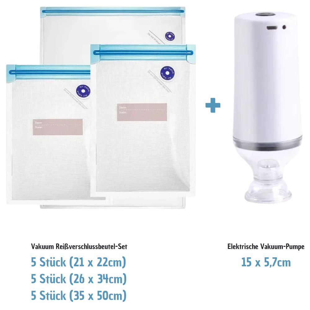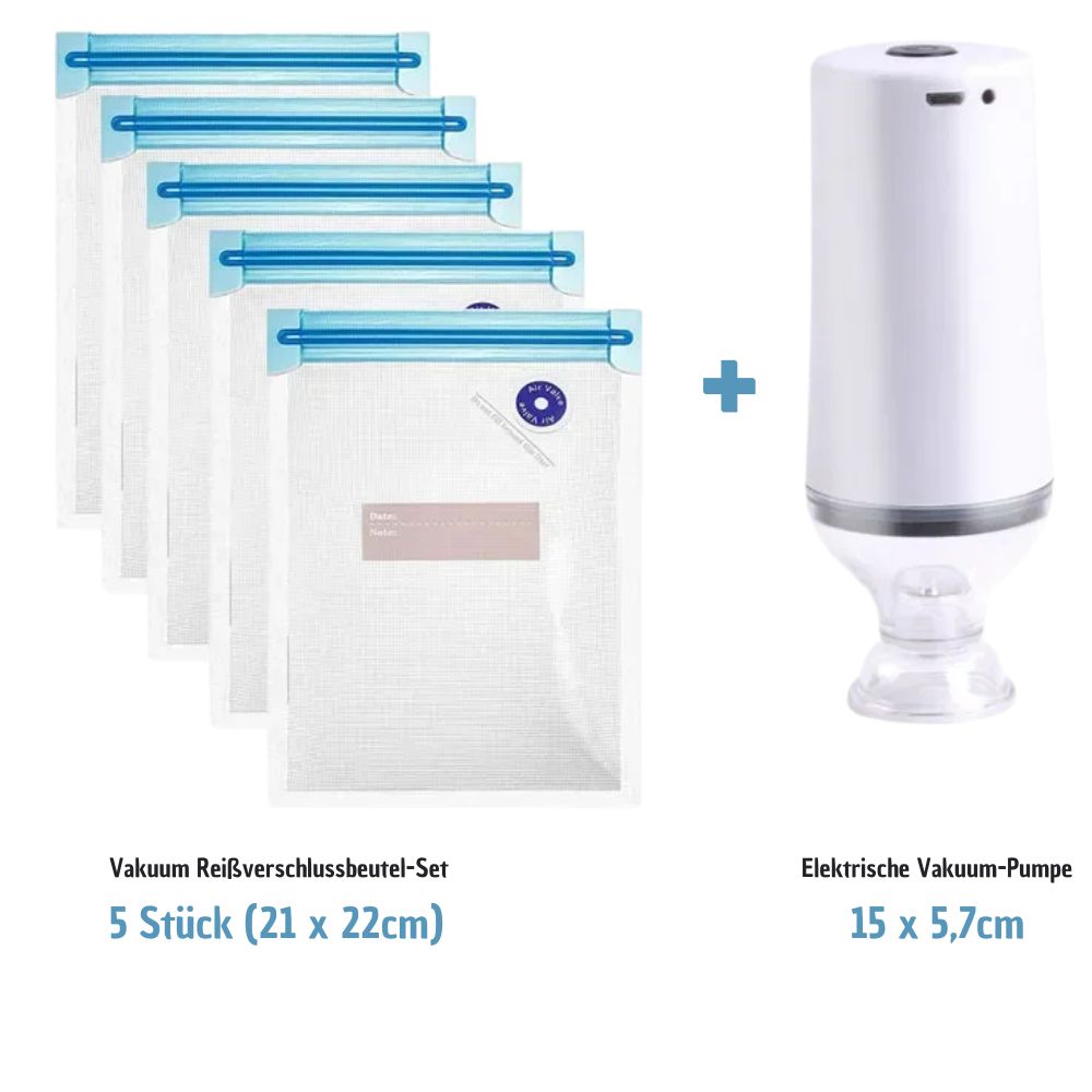 Vakuum-Zip-Beutel Set inkl. elektrischer Pumpe | USB-aufladbar, BPA-frei für Frischhaltung