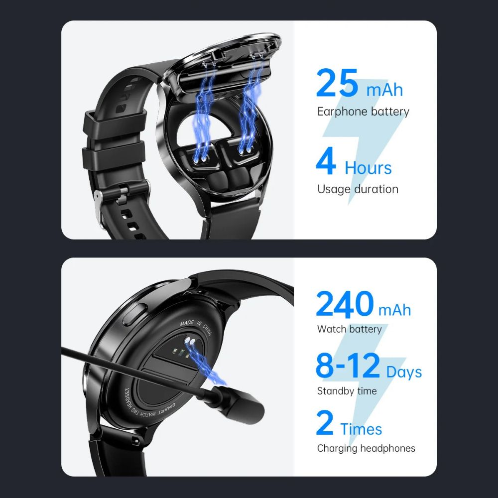X10 Smartwatch mit (2-in-1) Touch Bluetooth-Kopfhörern | Herzfrequenz- & Blutdruckmesser (GIF2)