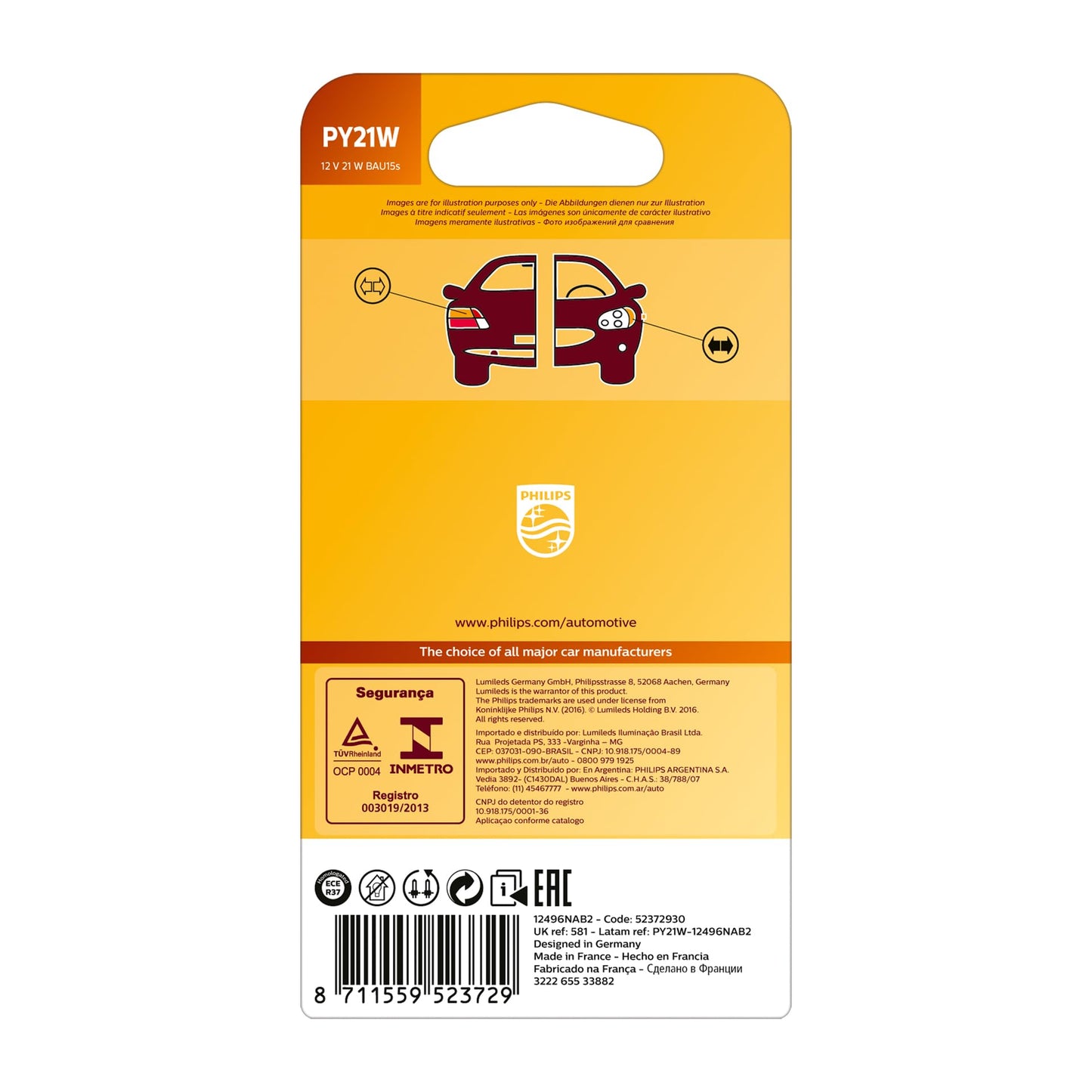 Phillips Vision PY21W-12V | Standard-Signal- und -Innenbeleuchtung (2er Packung)