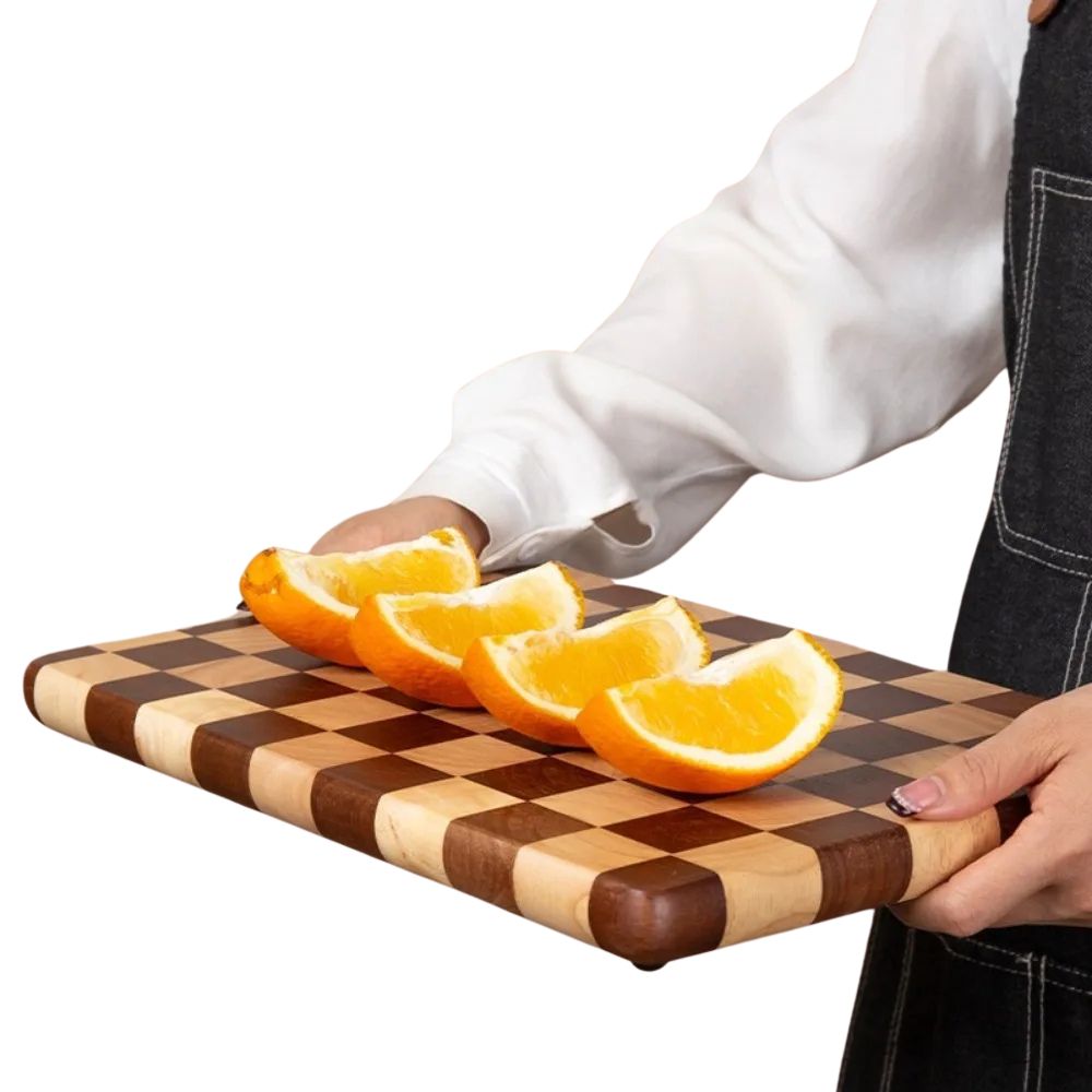 Mosaik Schneidebrett aus Massivholz | Rutschfest, zweifarbig, langlebig für Küche und Servieren
