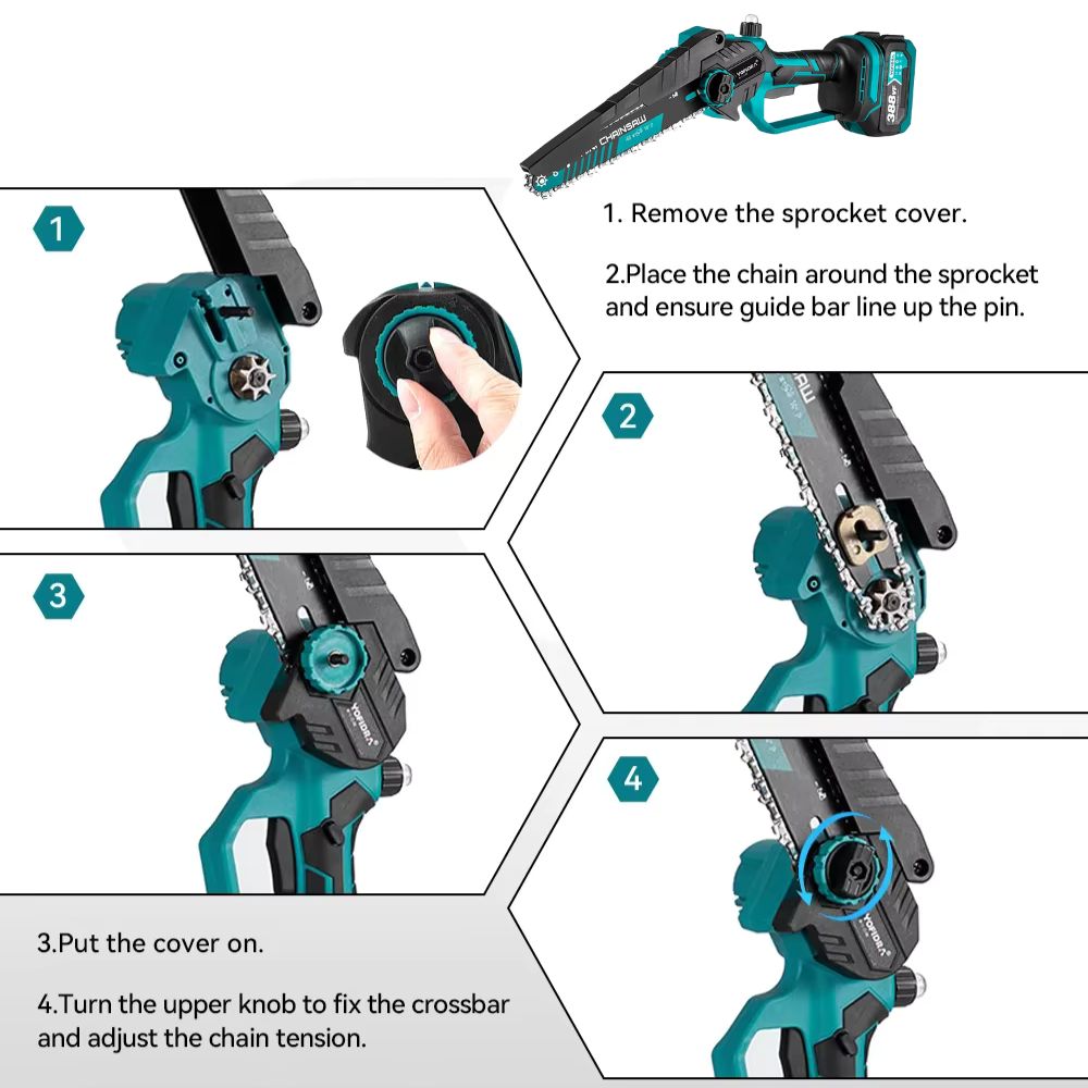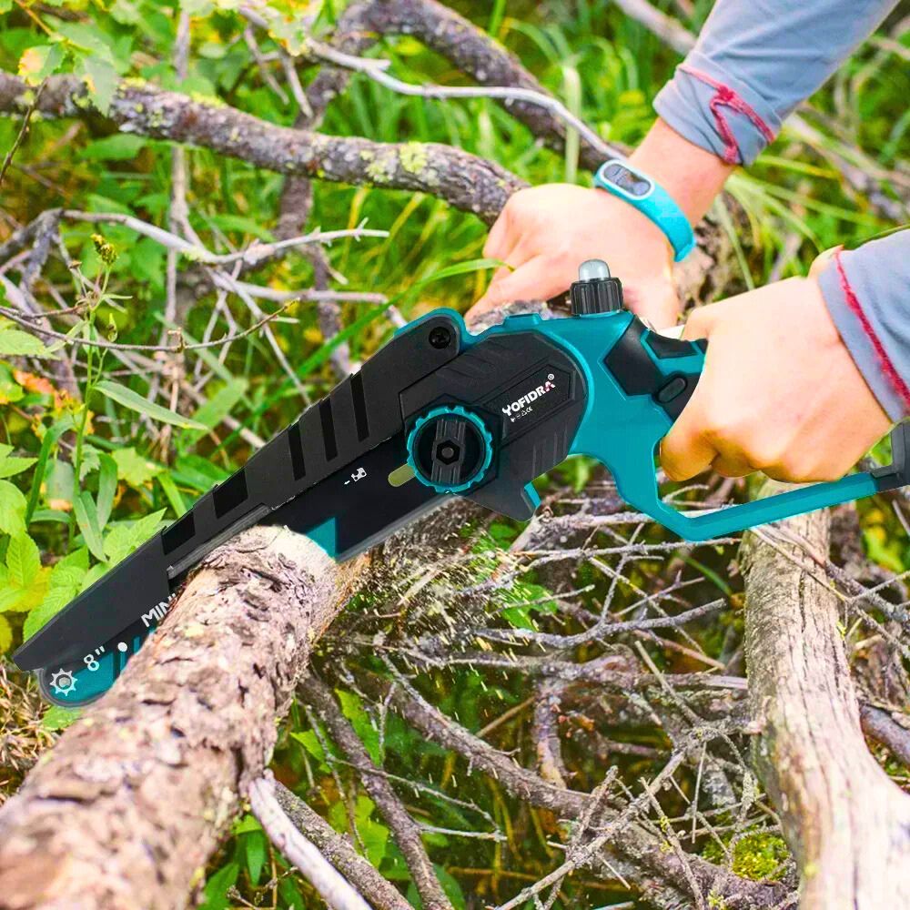 Erleben Sie kraftvolle und effiziente Schnitte mit der YOFIDRA 8" Akku-Kettensäge!